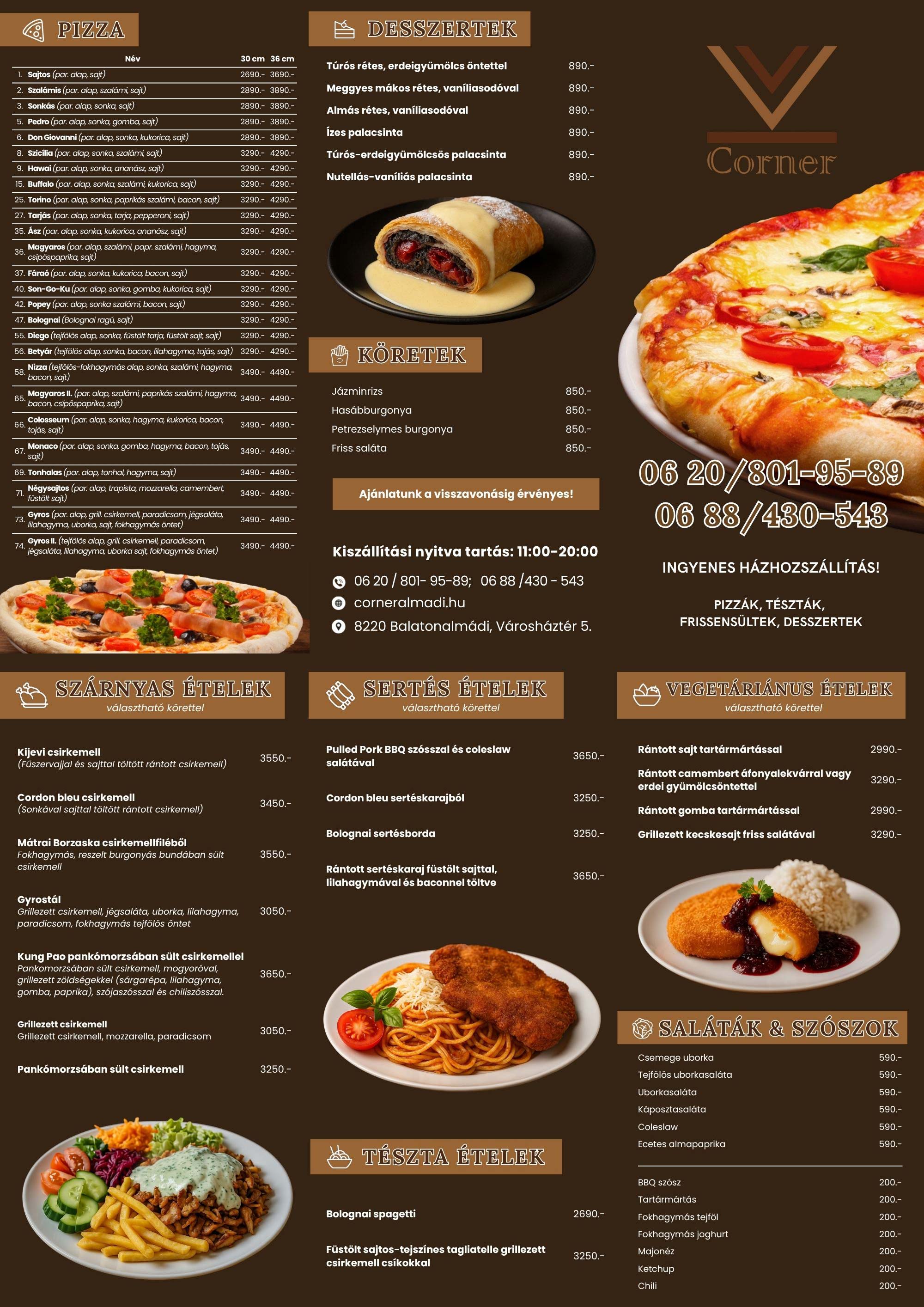 Rendelés leadása kiszállításra menüre: 20/801-9589 vagy 88/430-543 telefonmszámon lehet, elöző nap 19:00-ig